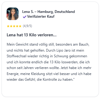 Ja! Lipo Jaro ist eine zu 100 % natürliche Formel, die in Deutschland unter strengsten europäischen Qualitätsstandards entwickelt wurde.