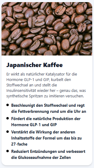 Es wurde speziell für Frauen mit trägem Stoffwechsel entwickelt, insbesondere ab 35 Jahren, die ihre GLP-1- und GIP-Hormone auf natürliche Weise reaktivieren wollen. Diese sind entscheidend für die Fettverbrennung und die Appetitkontrolle.